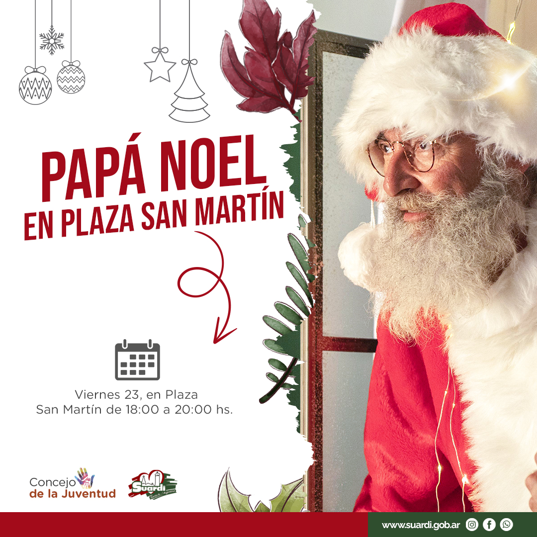 Mañana viernes 23, de 18:00 a 20:00 hs, Papá Noel estará en Plaza «San Martin» repartiendo caramelos y disfrutando un momento junto a ustedes.