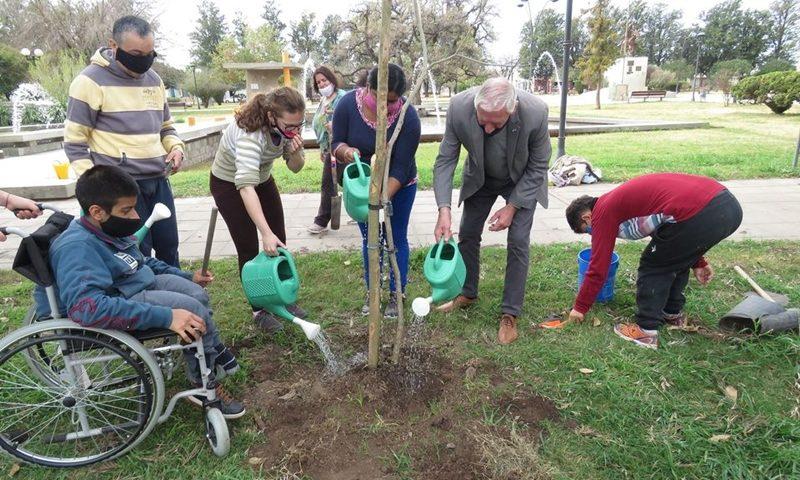 En la mañana del viernes 28/8 se plantó en Plaza San Martín un Lapacho Rosado, dicha actividad estuvo planificada desde el Área de Medio Ambiente y fueron protagonistas de la misma, los jóvenes que forman parte del Taller de Huerta Agroecológica, que depende de la Coordinación de Discapacidad de la Municipalidad.
