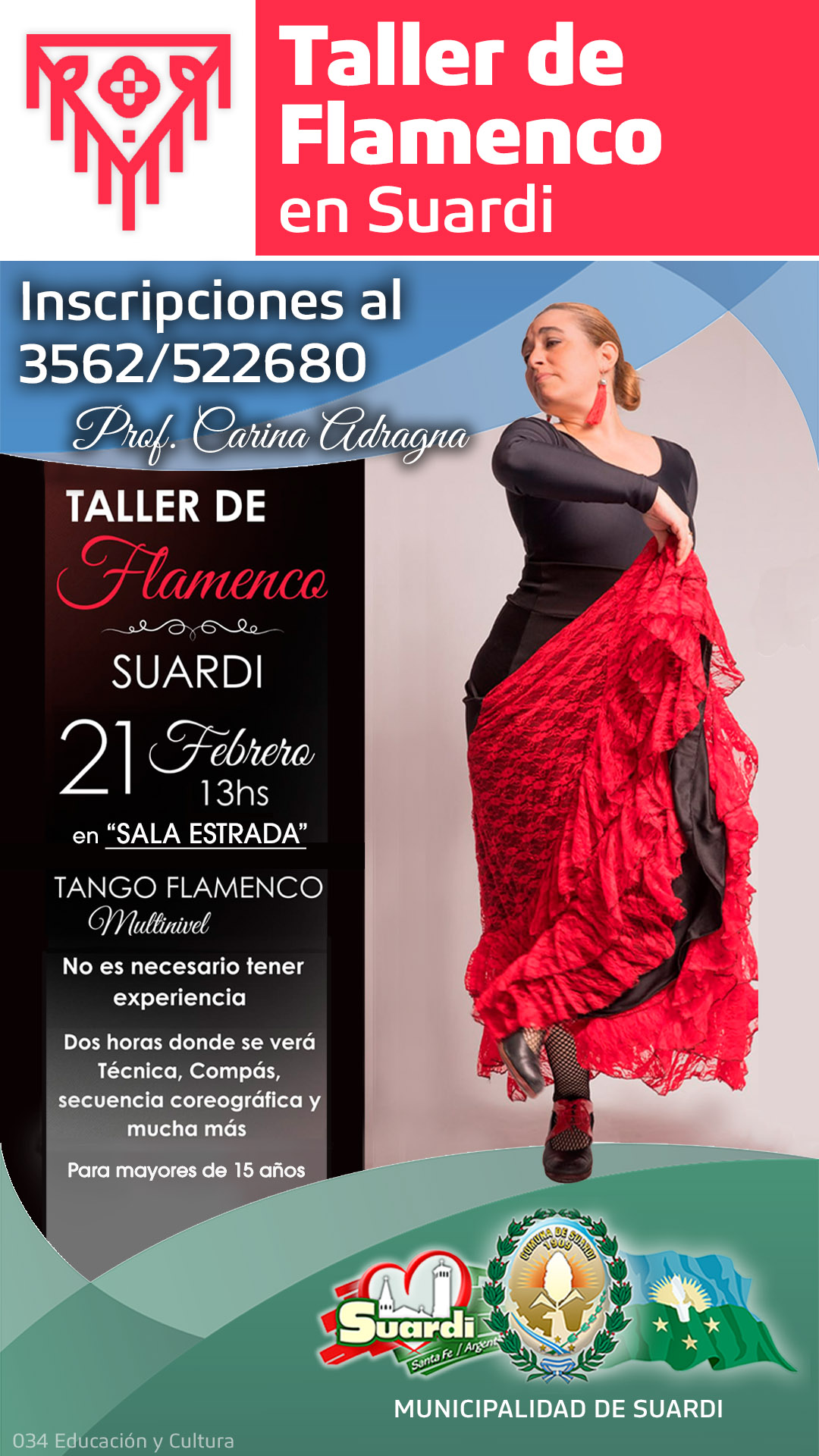 En el marco de los Talleres de Verano de la Municipalidad de Suardi, se llevará adelante una propuesta especial para quienes deseen acercarse al arte del flamenco y disfrutar de una experiencia expresiva, rítmica y llena de energía.